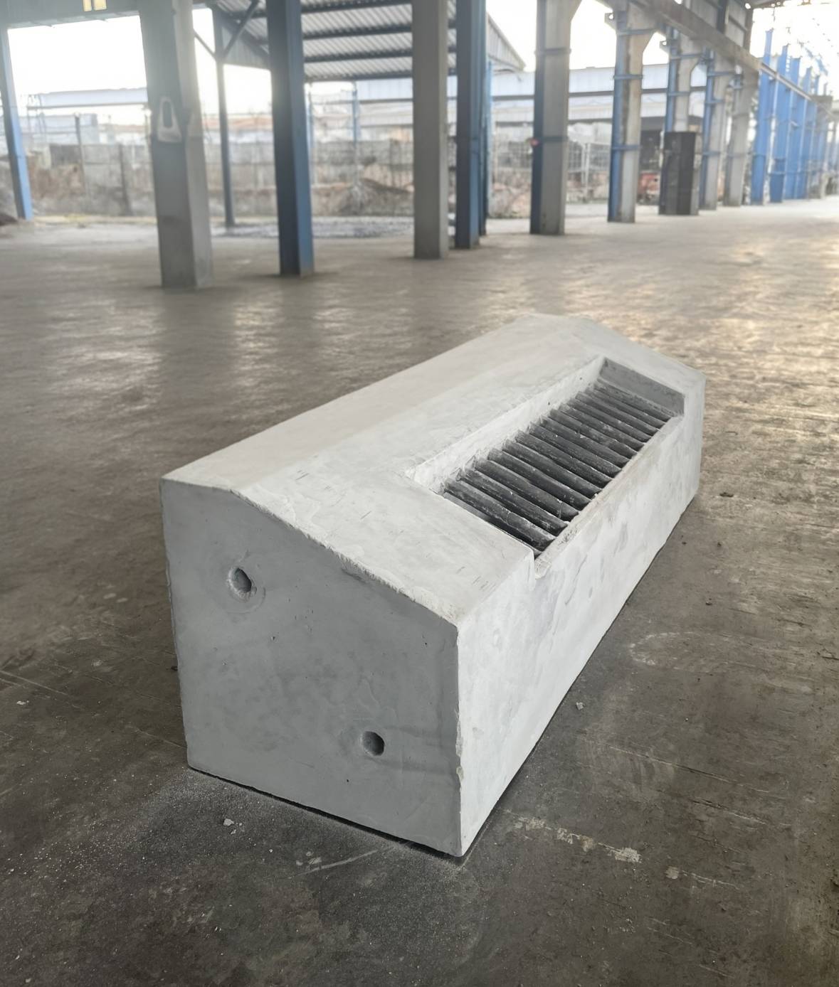 คันหินพร้อมตระแกรง เพื่อใช้ริมถนน ลดขั้นตอนการทำงาน 已经嵌置排水格栅的混凝土路缘石,帮助减少施工程序。